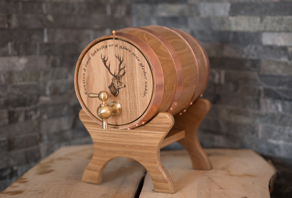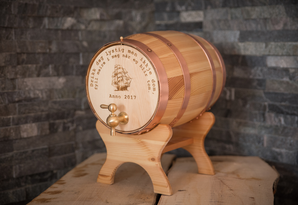 3,5-liter tønna får du i 2 valfrie, ulike variantar, eik og furu!
